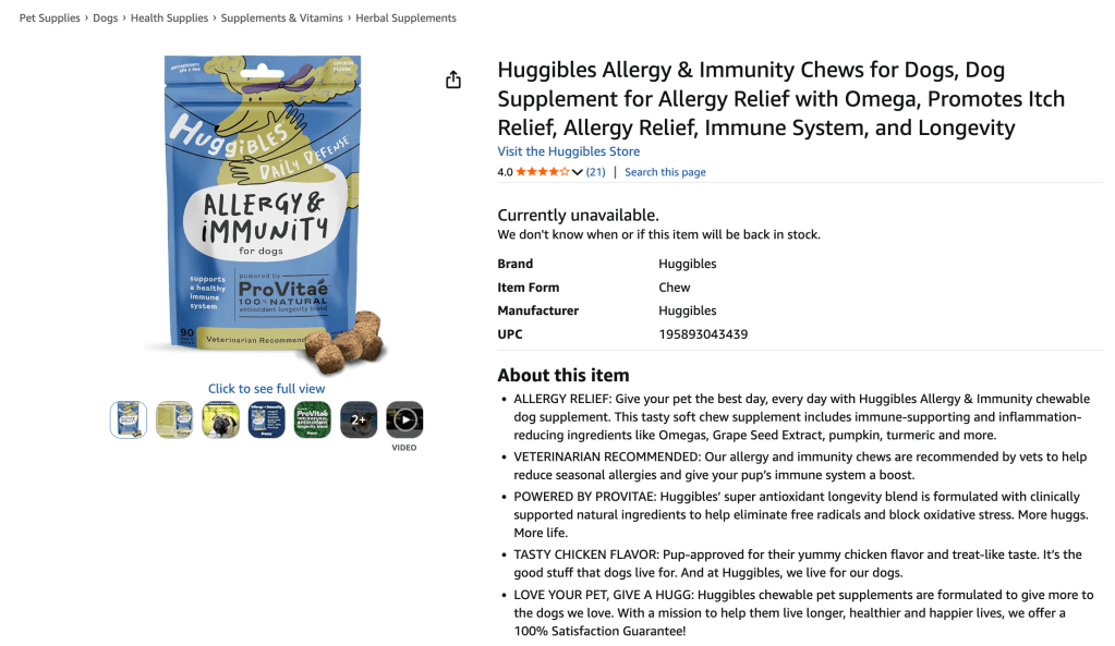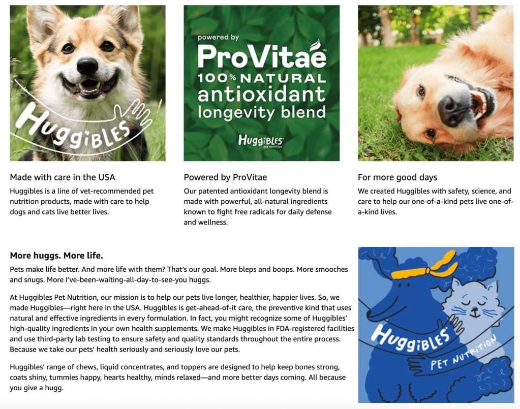 Huggibles pet supplements A+ Content completed on 10 SKUs.